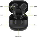 Wireless Headphones – earbuds, with integrated microphones, True Wireless, hybrid noise cancellation (ANC), closed construction, Bluetooth 5.3, AAC support, SBC, HFP, A2DP and AVRCP, voice assistant, ANC switching, switching between tracks, receiving calls, Low latency mode, frequency range 20 – 20 000 Hz, max. battery life 30 h, stand-by 31 h, charging time of the earpiece and case 2 h, IPX5 rating, replaceable earbuds included