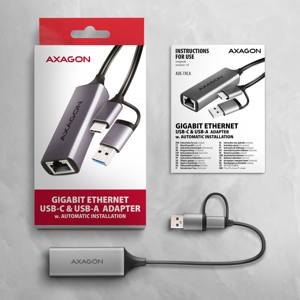 AXAGON AXAGON ADE-TXCA, Gigabit Ethernet LAN network adapter, USB-C + USB-A 5Gbps