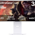 Monitor OLED – curved, Ultra Wide QHD 3400 × 1440 (21:9), 240 Hz, Anti-Glare display, 10 bit, 1 ms, G-Sync Compatible, FreeSync Premium and Adaptive-Sync, adjustable height, speakers, HDMI, USB-C and DisplayPort, RJ-45 (LAN) data interface