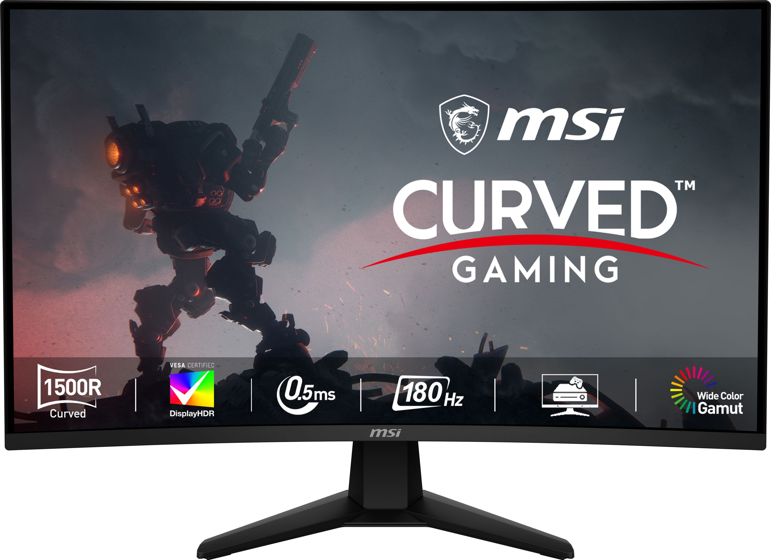 Monitor – VA, curved, Quad HD 2560 × 1440 (16:9), 180 Hz, Anti-Glare display, 0,5 ms, FreeSync, HDR, HDMI and DisplayPort, VESA