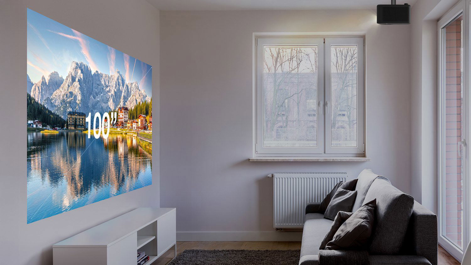 Projector DLP LED, 1920 × 1080 Full HD, native resolution 1920 × 1080, 16:9 and 4:3, brightness 1500 ANSI lm, HDMI, Audio output jack and USB, speakers