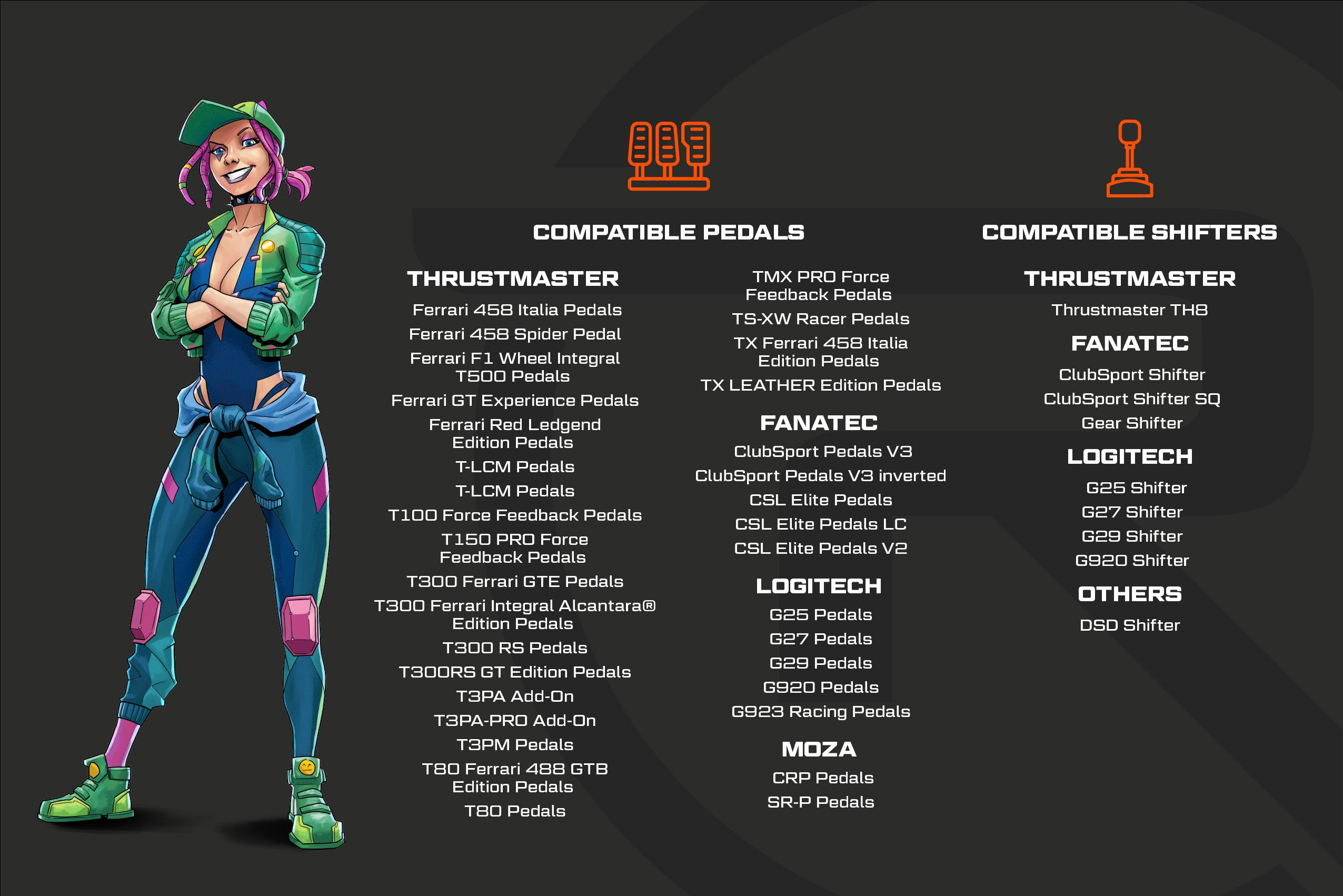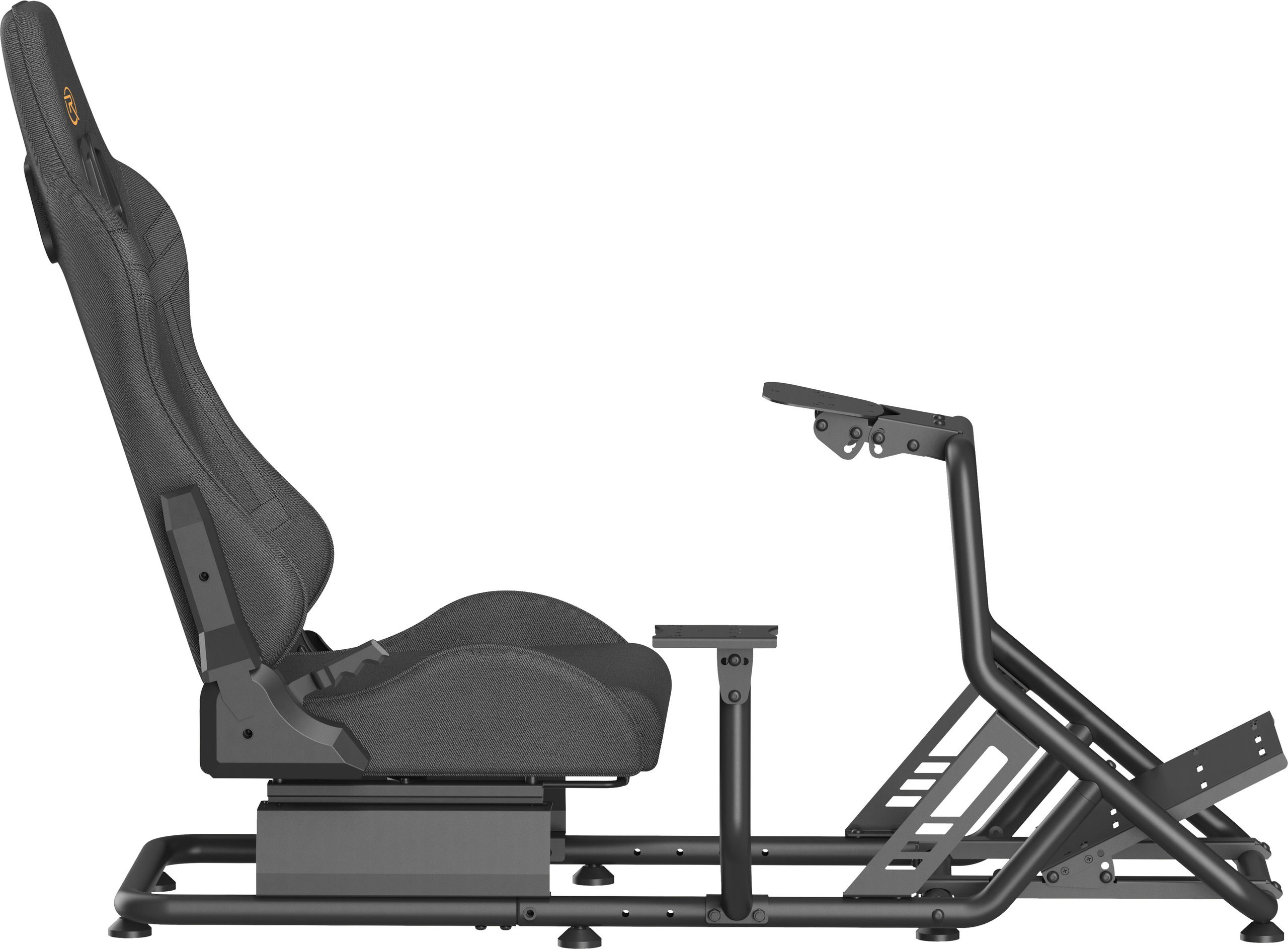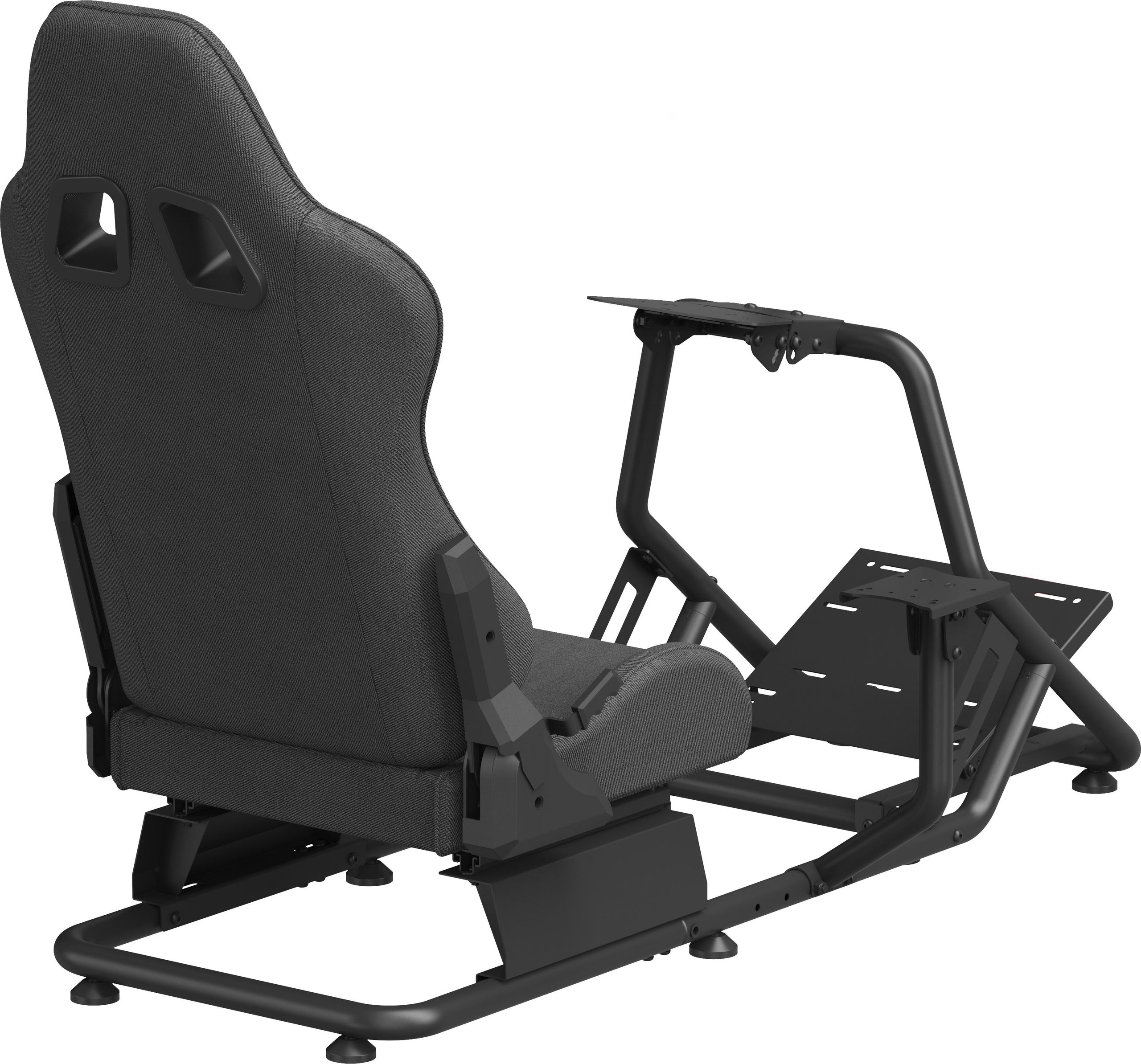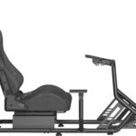 Gaming Racing Seat – ergonomic racing seat with fabric cover, load capacity 100 kg, adjustable backrest (30 to 90°), Seat shift of up to 18 cm, Adjustable pedal panel (0° / 15° / 27°) and steering wheel (+25° to -35°), The gear lever can be installed on both the right and the left, pre-drilled mounting points, steel construction, cable management system, non-slip feet, compatible with Logitech accessories, Fanatic, Thrustmaster and others
